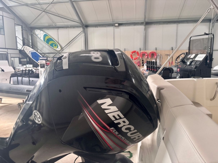 Très beau Quicksilver Activ 505 de 2014 en état comme neuf, moteur Mercury 80 cv de 2017 avec seulement 180 heures, le prix comprend la remorque Nautilus 1100 kg de PTAC de 2014. Le bateau est bien équipé :