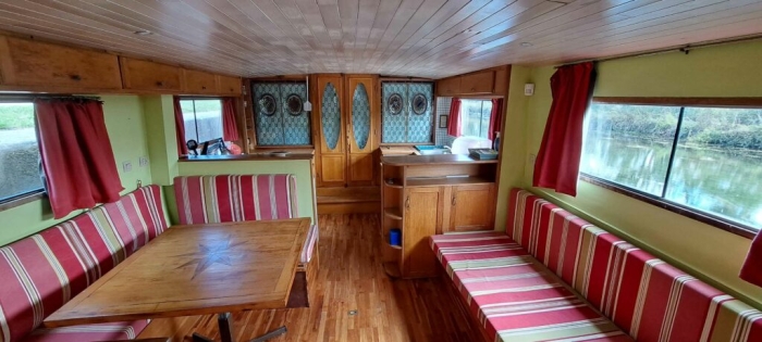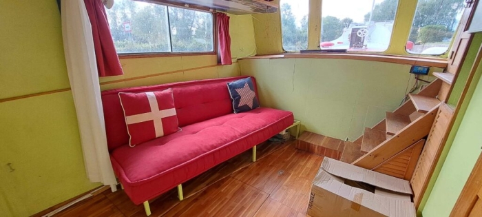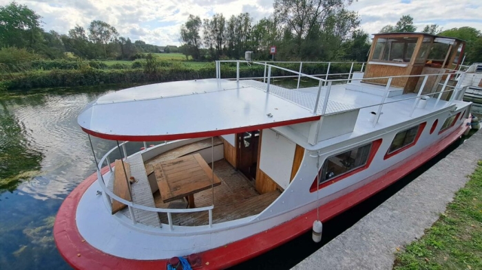 Jolie péniche Hollandaise de 1910 dotée de beaucoup de charme, dimension 16,50 m x 3,65 m. Ses propriétaires actuels, très attachés à son histoire, l'ont acquise en 1991 et l'ont entretenue et modifiée à grands frais (doublage de la coque en 5mm en 2005). Ses accès multiples (central, avant, arrière) proposent une configuration originale. De nombreux ouvrants permettent une importante aération en été. L'aménagement intérieur est très cosy avec plusieurs vitraux de qualité. La pièce à vivre propose un espace cuisine en double U et s'ouvre sur une agréable terrasse arrière. La cabine est à l'avant. Un robuste Volvo Penta 110cv et une direction hydraulique professionnelle et précise procurent de bonnes qualités de navigation. Cette unité nécessite à ce jour un peu d'attention mais reste très saine, proposée aujourd'hui à un prix très intéressant, idéale pour tous projets (navigation, vie à bord, B and B de charme)...