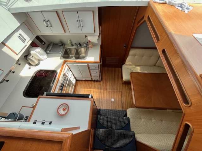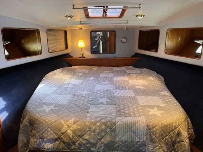 Belle vedette Horizon 45 de 1992 en très bon état, dimensions 14,65 m x 4,57 m, 2 moteurs Caterpillar 3208, 375cv, avec seulement 1900h. Traitement anti osmose 2012, bimini, chauffage remplacé en 2024. Deux très belles cabines avec lit central, wc et douche séparée. Belle terrasse arrière et flyerbridge confortable. Bateau très bien suivi et entretenu. Les menuiseries sont de qualités et proches de l'état neuf. Deux propulseurs. Liste des aménagements et équipements disponibles sur demande. A voir absolument.