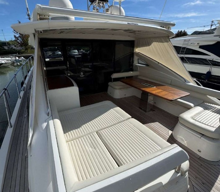 Très beau Princess V65 Sport Yacht année 2008, état neuf, très bien entretenu, entretien fait en 2024, dimensions 20,33 m x 5,08 m, 2 moteurs MAN V12 de 1360 cv chacun avec seulement 1400 heures, très bien équipé, liste des équipements, aménagements et entretien sur demande.