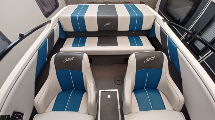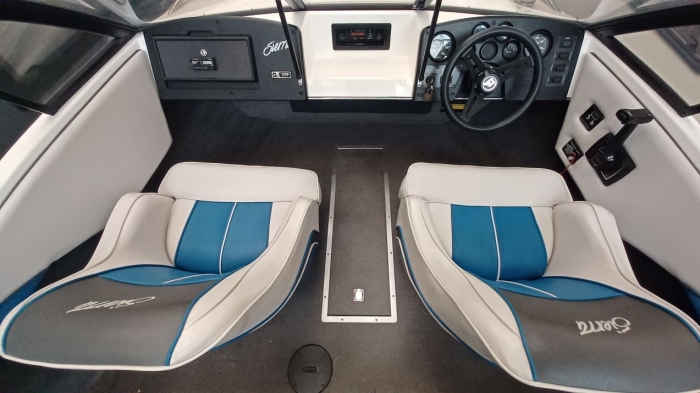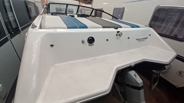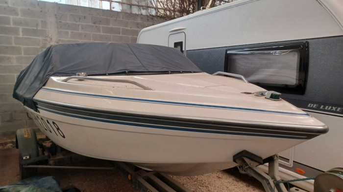 Exceptionnel, 1ère main acheté neuf par son propriétaire, Glastron Sierra 177 année 1990, a navigué seulement 2 heures, état neuf, dimensions 5,20 m x 2,18 m, moteur Volvo Penta 130 cv, révision effectuée, embase et hélice impeccables, sondeur et autoradio d’origines. La sellerie est complète, sièges, coussins et moquette, ainsi qu’un bimini et sa housse, l’ensemble est neuf. La remorque RGF de 1990, 1500 kg de Ptac, est comprise dans le prix. Le bateau est prêt à mettre à l’eau.