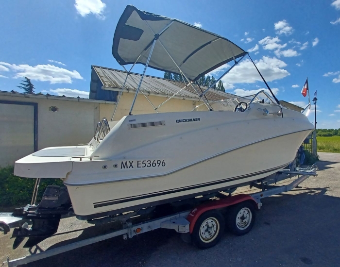 Beau Quicksilver 640 Cruiser de 2011 en très bon état, Dimensions 5,94 m x 2,49 m, moteur Mercruiser 135cv avec 200 h d’origine, uniquement navigation en eau douce, entretien régulier (factures). Nombreux équipements : Radio fusion, GPS, panneau de pont, douche de cockpit, compte tours-speedo-jauge essence, échelle inox, plage arrière, bain de soleil arrière, siège copilote, table, matériel de sécurité, 2 couchages, sellerie parfait état, antifouling. Le prix comprend la remorque RSA double essieux Ptac 2120 kg de 2009. Bateau prêt à emménager et naviguer en très bon état, visible dans le Loir-et-Cher, vidéos et nombreuses photos disponibles, offre de financement possible sous réserve de l’acceptation du dossier par l’organisme de financement, me contacter pour infos ou rdv, Fabrice Tel/Whatsapp 0641436035. www.viking-nautik.com
