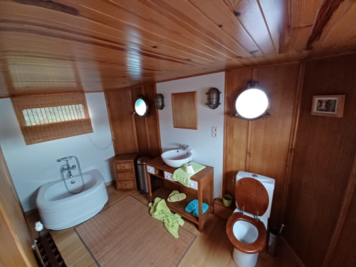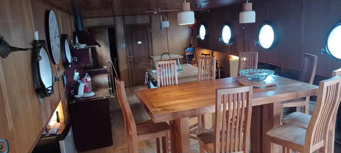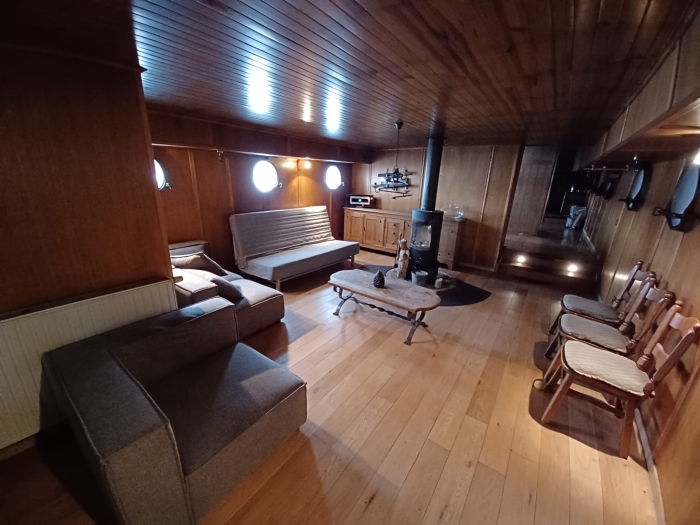 Péniche en acier de type SPITS, entièrement équipée et aménagée en logement. Bateau de commerce construit en Belgique en 1958, transformé en 2005. dimensions: L. : 38.94m x l. : 5.08m x 2.45m Moteur diesel marin Detroit GM de 174 Kw. 3 cuves de 1000l d'eau douce, 1 cuve de 1000l d'eau grise. 1 belle cuisine equipée 1 salon avec poele à bois 2 salles de bain 1 grande chambre avec possibilité de diviser en 2 chambres 1 petite chambre cabine arrière groupe electrogène Diesel & possibilité de brancher à prise de quai Le bateau est isolé (mousse projetée), est équipé d'un chauffage centrale au mazout avec thermostat. Certificat Euroclass Fevrier 2025 à visiter à Huy