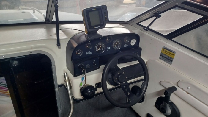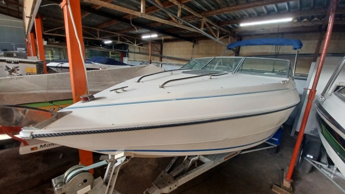 Joli day cruiser Stingray 590 ZP année 1991 en bon état, dimensions 5,93 m x 2,39 m, homologué 8 personnes à bord, moteur Mercruiser de 136 cv entretenu par professionnel. La sellerie est en bon état, il y a un sondeur Humminbird, un bimini inox neuf et un bain de soleil de 2025. Le propriétaire laisse une bouée tractée, une paire de skis et 8 gilets de sauvetage. La remorque Satellite de 1992, 1300 kg de Ptac, est comprise dans le prix. Une belle affaire.