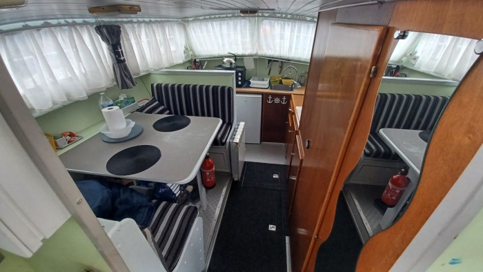 Jolie Vedette Hollandaise Kruiser du chantier Adrianne de 1981 en très bon état, dimensions 9,94 m x 3,40 m, homologuée 7 personnes à bord, moteur DAF diesel de 100 cv, système refroidissement Keelcooling. Le carénage, les anodes et une expertise ont été faits en 2022. Les peintures extérieures sont en très bel état.
